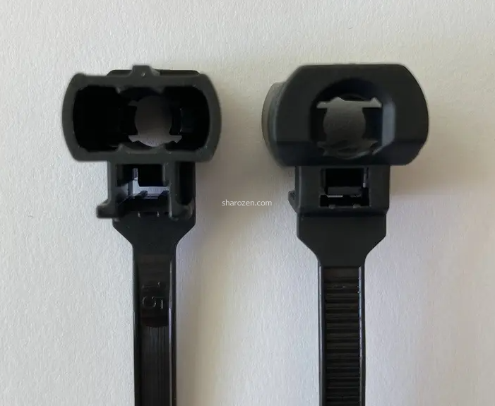 扎带可分为杉树型、箭头型、焊接螺柱型、卡钣金型、粘贴型等多种类型。